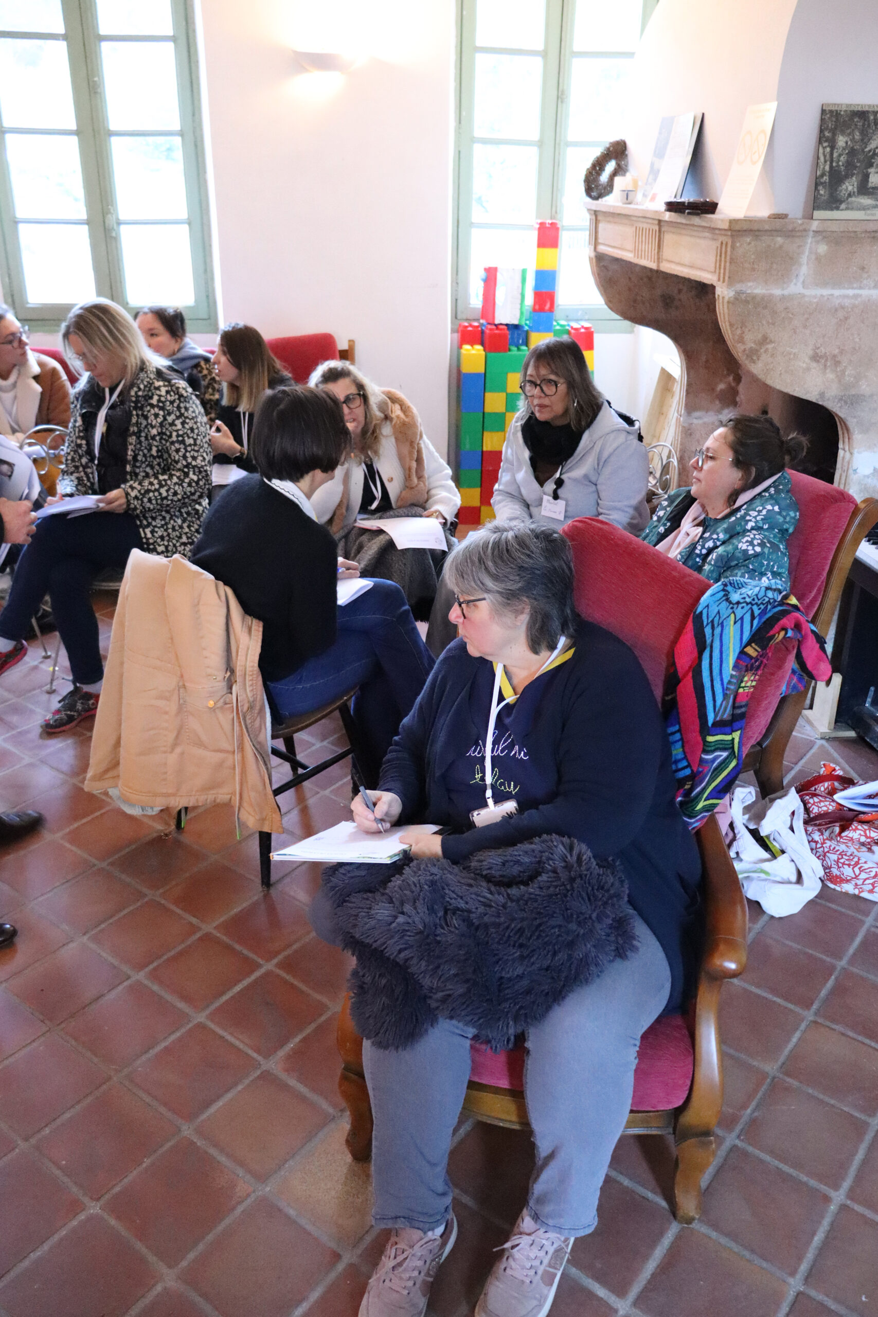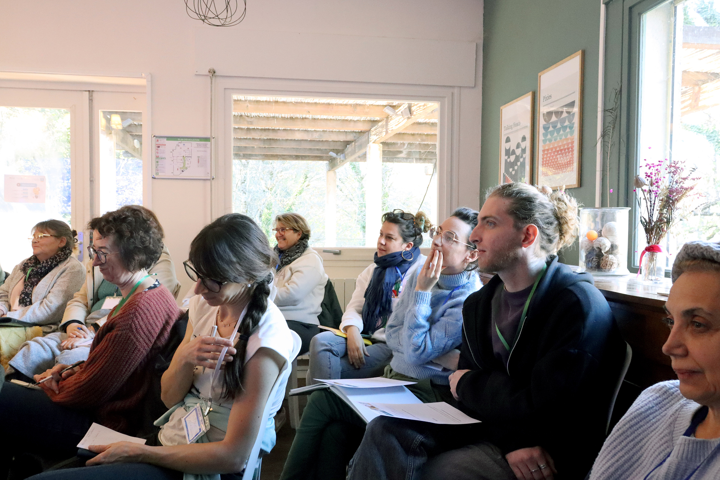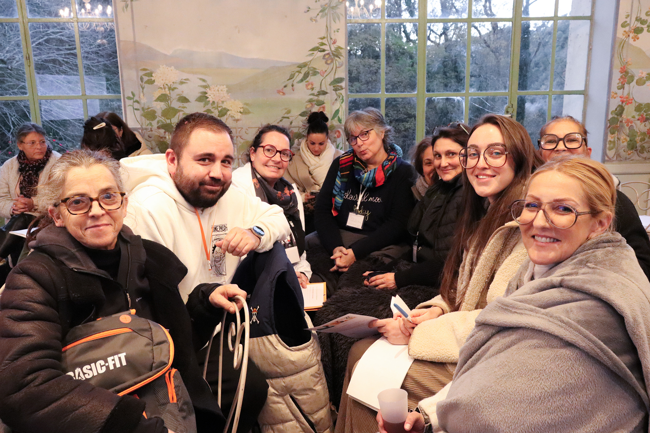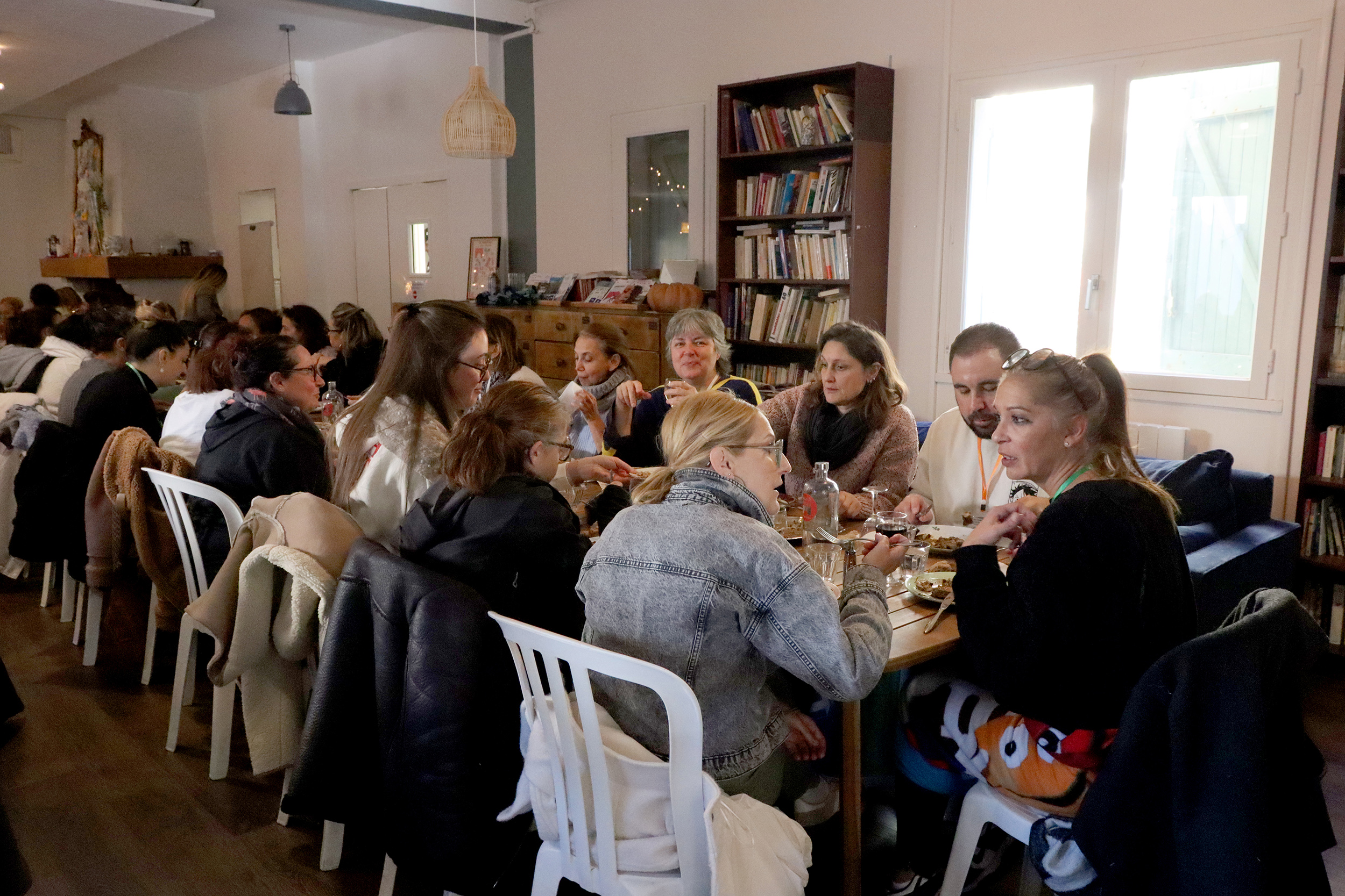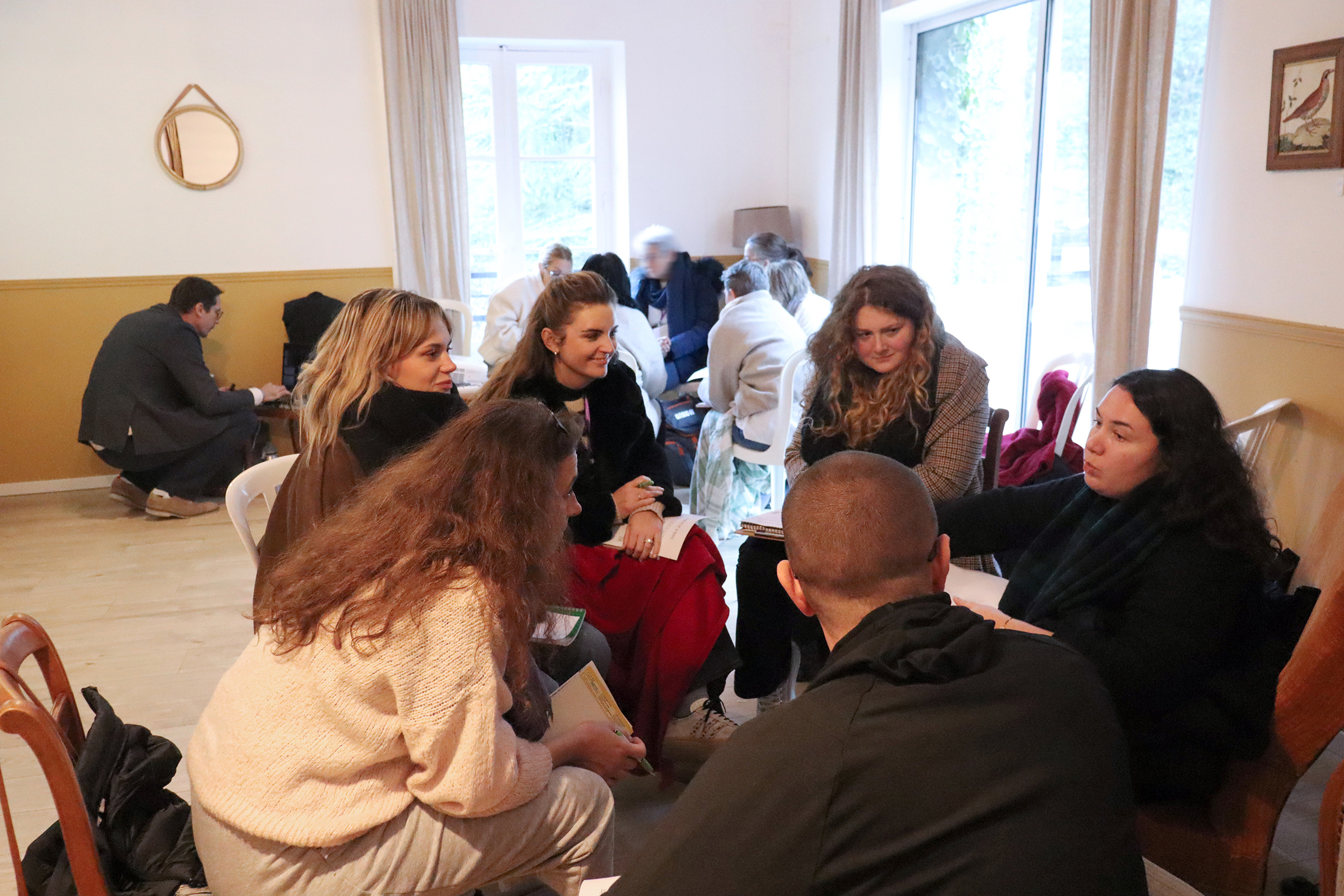 Accueillis dès le matin autour d’un café dans une vaste verrière d’époque, les participants ont rythmé leur journée entre sessions plénières, ateliers thématiques, temps de supervision et moments conviviaux. Le déjeuner, partagé en grandes tablées autour d’une cuisine maison, servi au coin du feu, a prolongé les échanges dans une atmosphère chaleureuse et propice à la convivialité.
