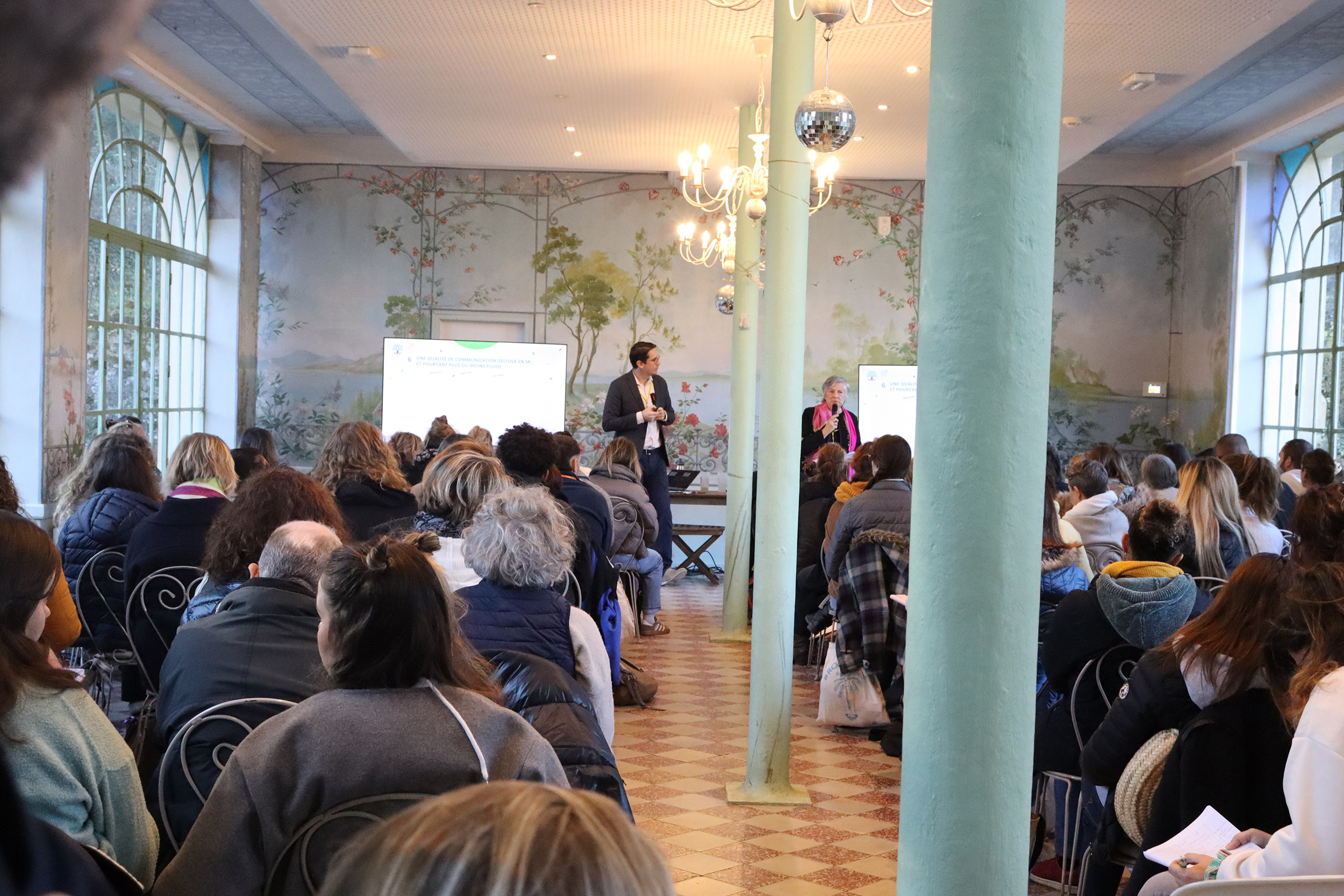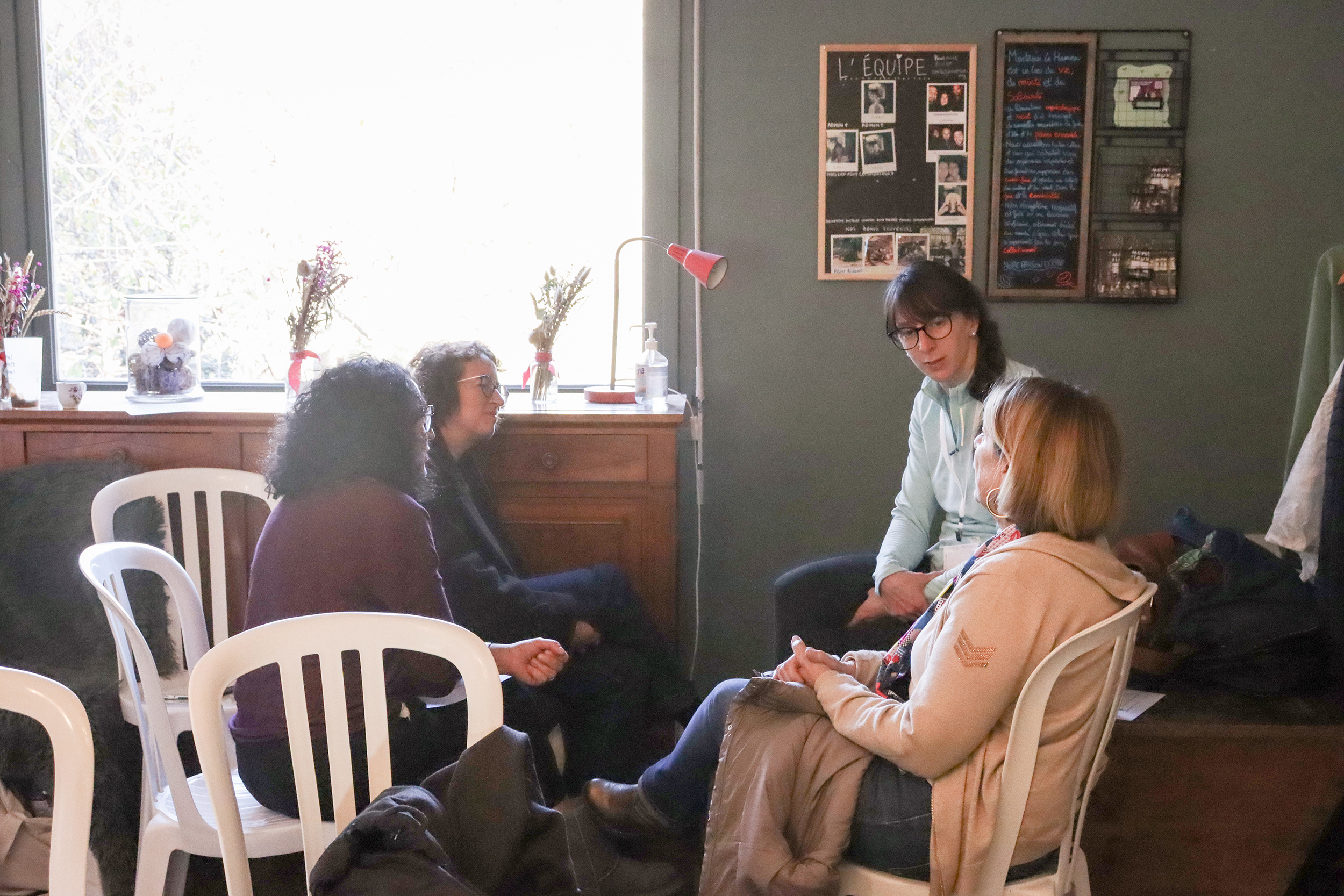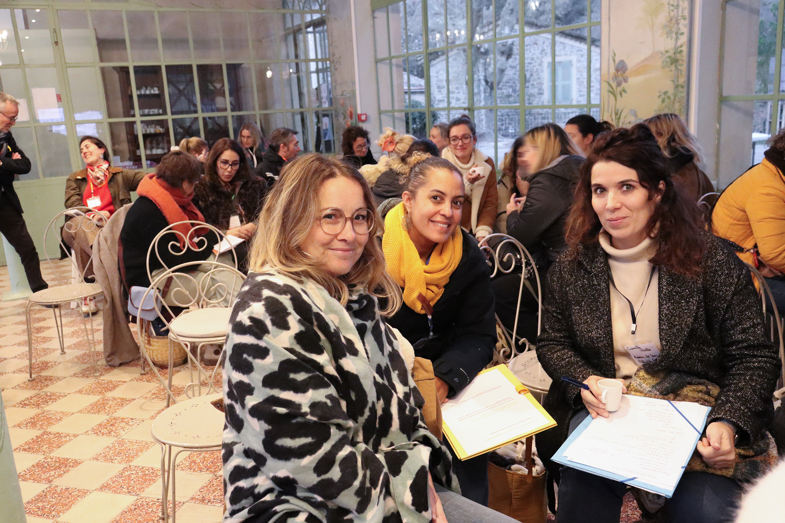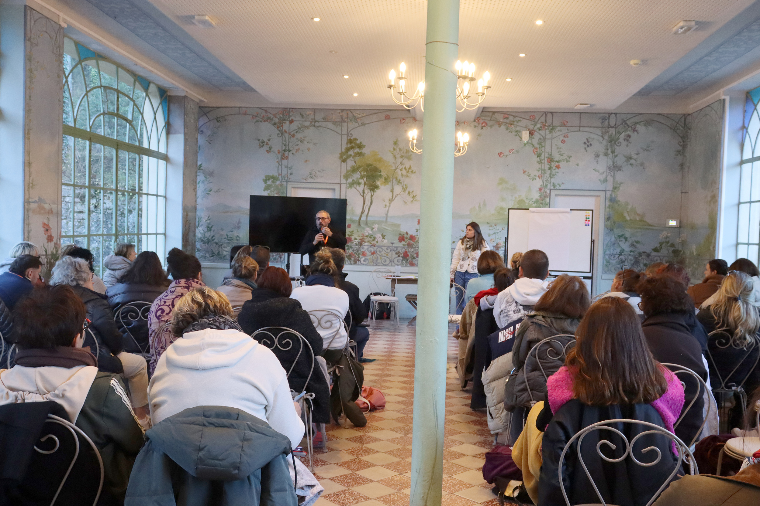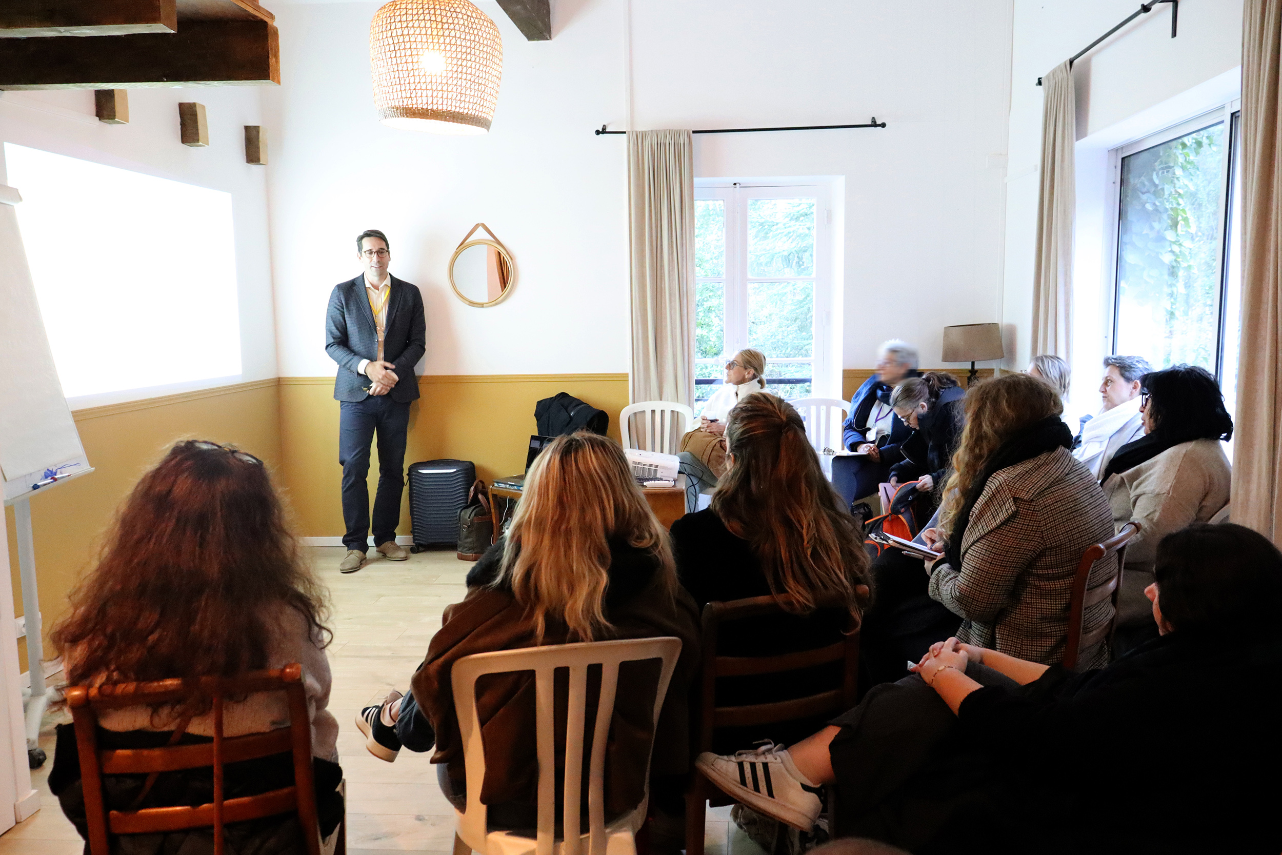 Accueillis dès le matin autour d’un café dans une vaste verrière d’époque, les participants ont rythmé leur journée entre sessions plénières, ateliers thématiques, temps de supervision et moments conviviaux. Le déjeuner, partagé en grandes tablées autour d’une cuisine maison, servi au coin du feu, a prolongé les échanges dans une atmosphère chaleureuse et propice à la convivialité.