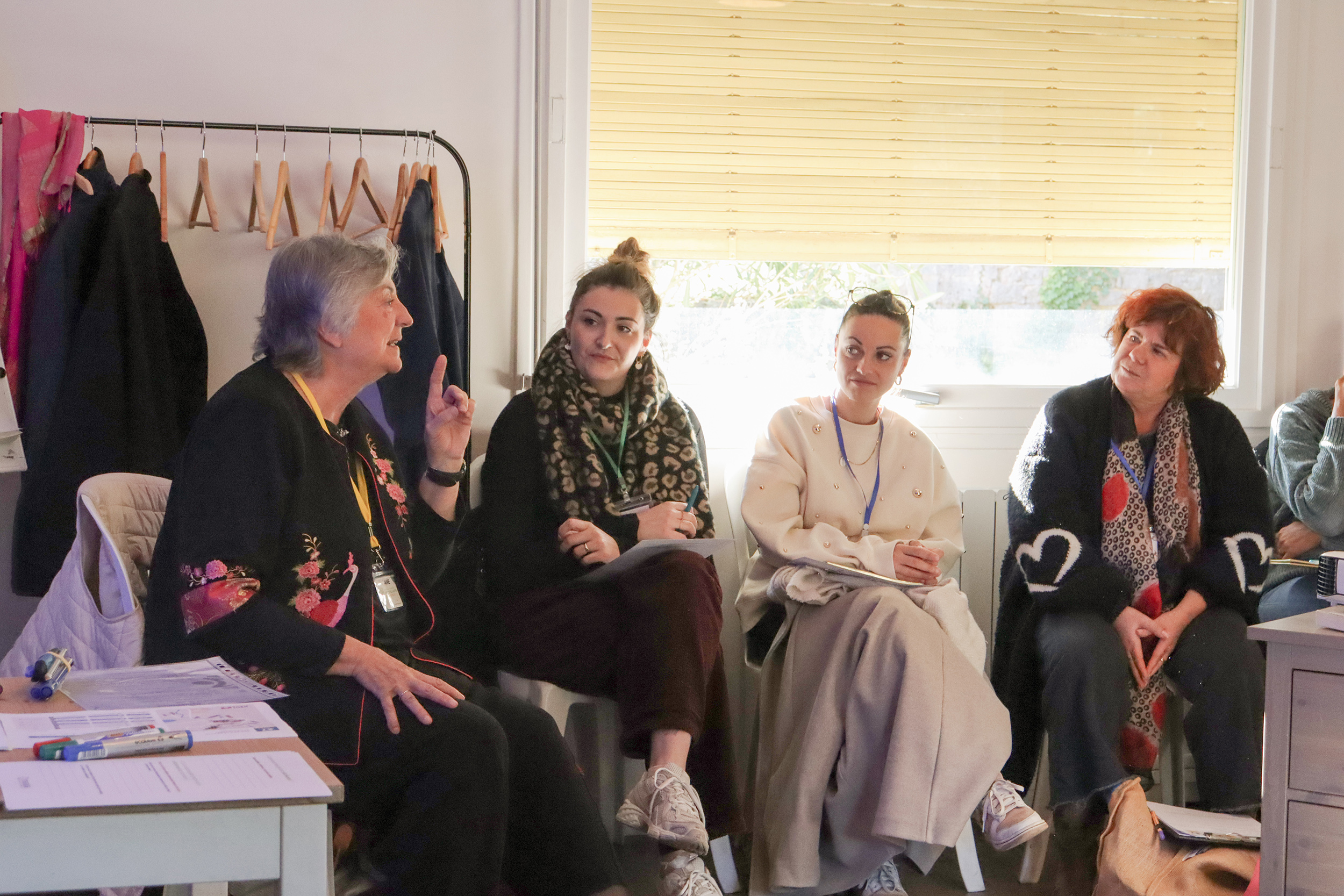 Des ateliers thématiques – en petits groupes – ont ensuite permis une mise en pratique concrète. Le premier atelier, centré sur le savoir écouter l’Autre et s’écouter, a mobilisé des jeux de rôle et des analyses de situations pour expérimenter différentes postures d’écoute, identifier leurs impacts sur la qualité des échanges et renforcer la compréhension mutuelle au sein des équipes. Les débriefings collectifs ont favorisé la prise de conscience des apprentissages et des points de vigilance dans les relations interprofessionnelles.