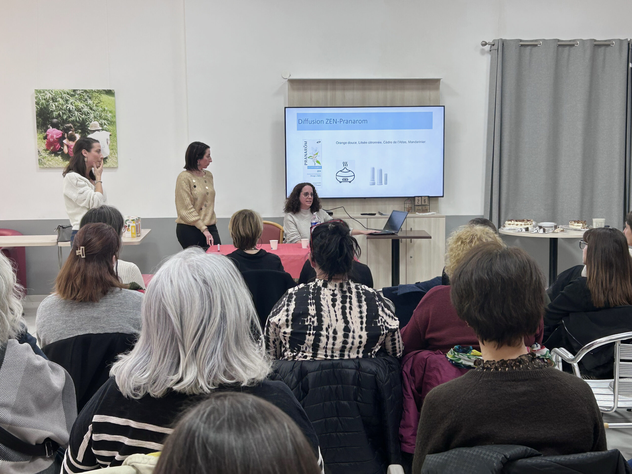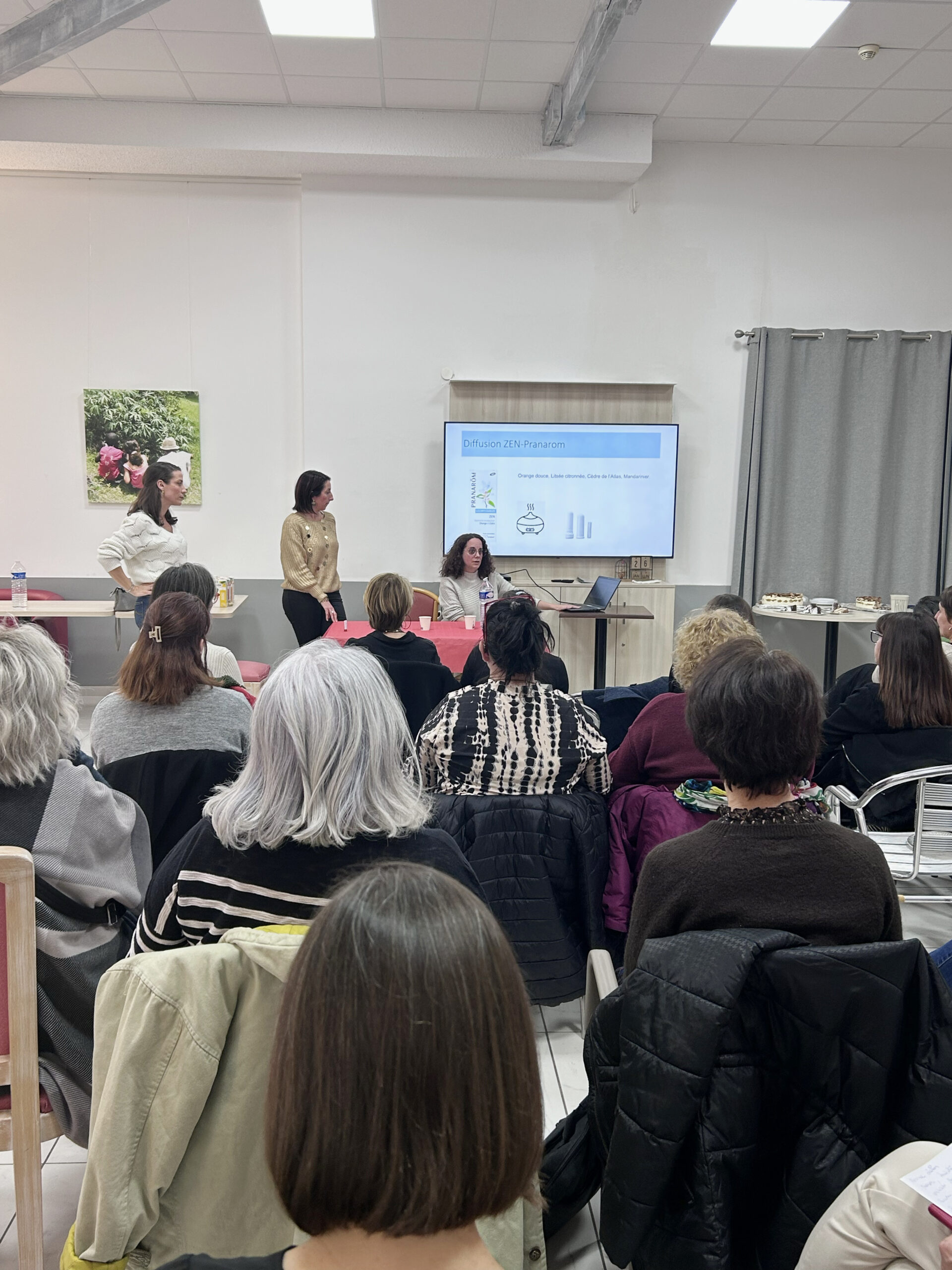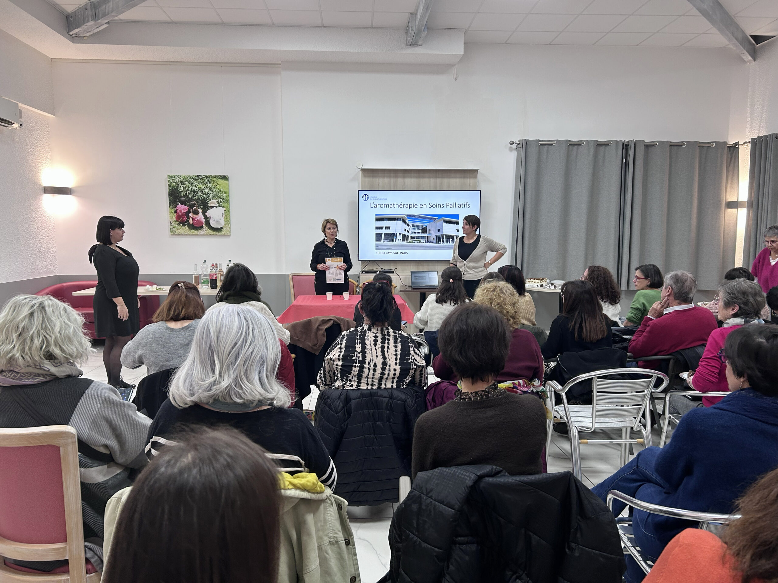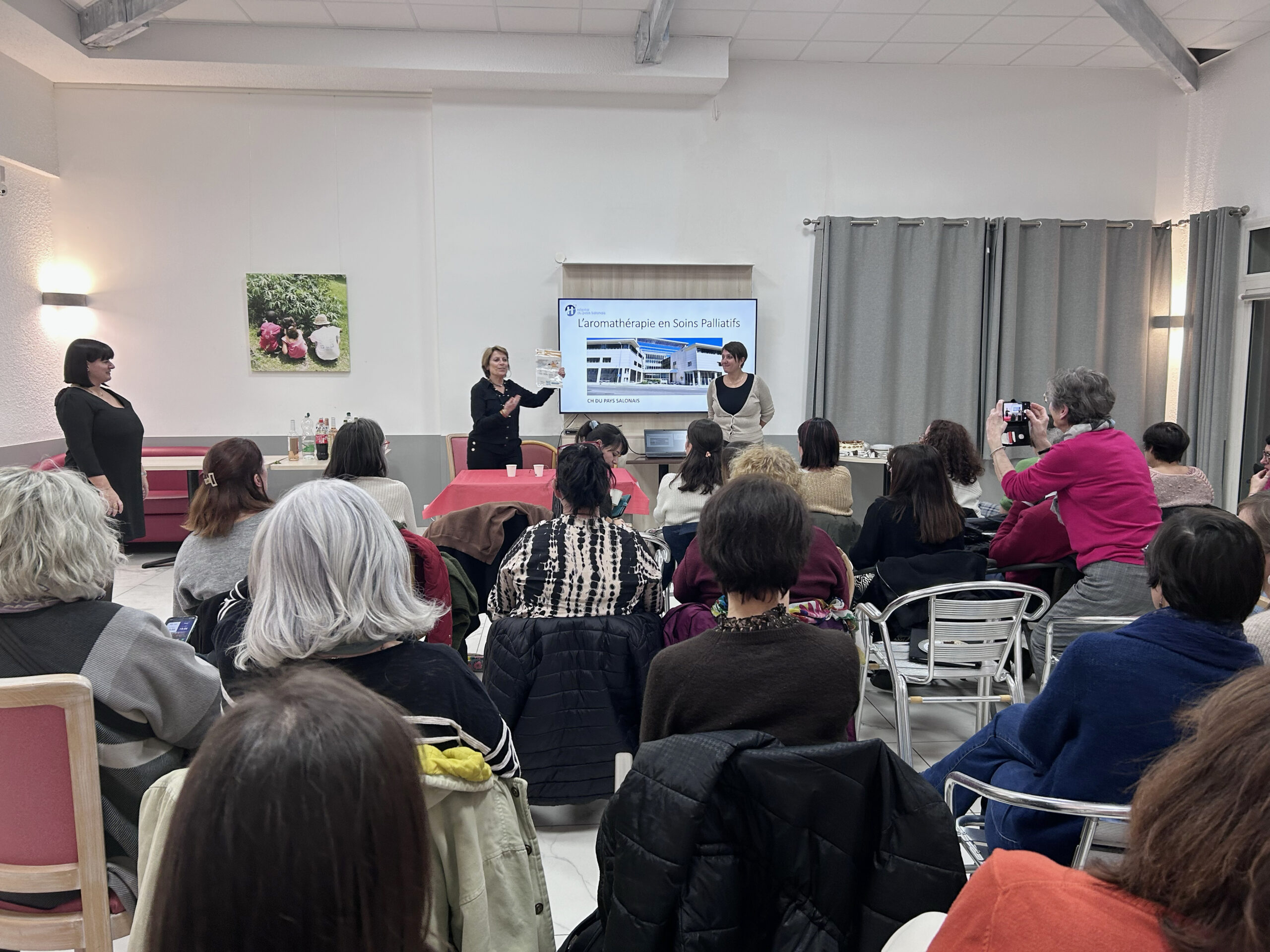 Elles ont ouvert la soirée en présentant le travail mené autour de l’aromathérapie. Cette pratique, développée et portée collectivement par une équipe très investie, s’inscrit dans une démarche structurée et progressive. Formées à l’aromathérapie et à la phytothérapie (DU), elles ont initié et accompagné la mise en place d’un véritable projet de service, aujourd’hui pleinement intégré à la pratique soignante quotidienne.